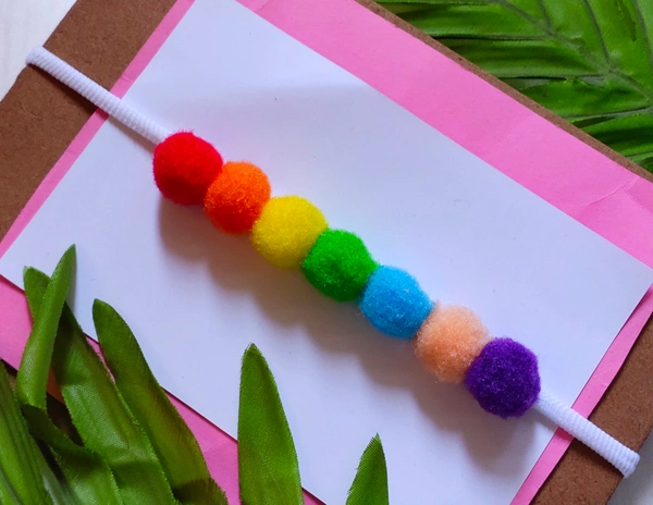 This multicolored pom pom headband made with small pompoms in rainbow colour and soft headband. Suitable for small babies.